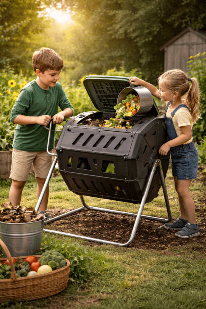 A sturdy, outdoor compost tumbler accelerates the breakdown of garden clippings and kitchen leftovers by keeping materials turning and oxygenated, allowing finished compost to develop in weeks rather than months.