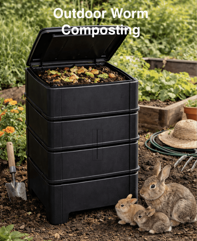 Large-volume worm composting designed for outdoor garden environments. Produces castings and compost tea for soil improvement, while handling food and plant waste efficiently throughout the season.