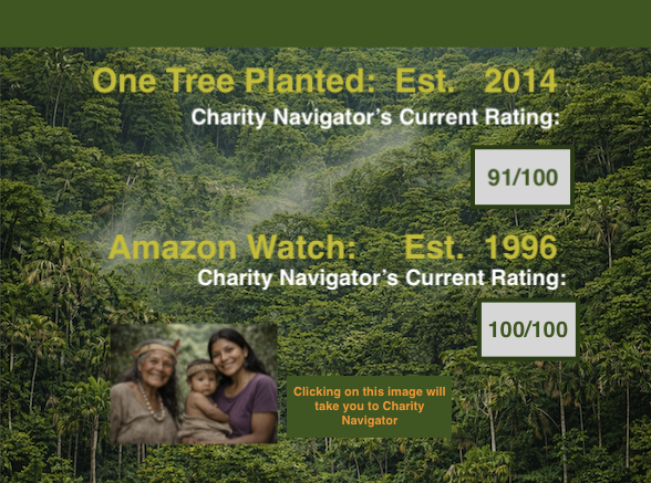 This site contains affiliate links. If you purchase through our affiliates, we may earn a commission at no additional cost to you. $1 of every $40 of net qualifying commissions to us supports *Amazon Watch and One Tree Planted initiatives in the Amazon. CharityNavigator rates both at 4 stars.