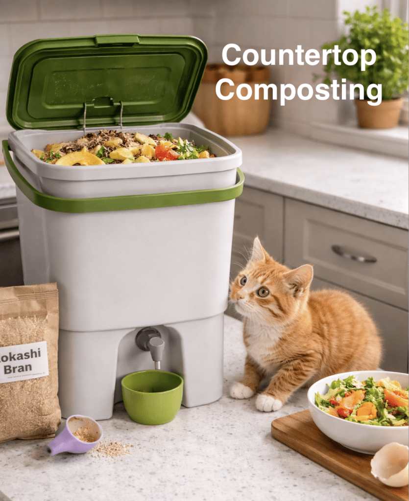 Bokashi systems ferment kitchen scraps indoors using bran and airtight buckets, reducing odors and allowing households to handle food waste year-round, making Bokashi a useful bridge between kitchen and garden workflows.